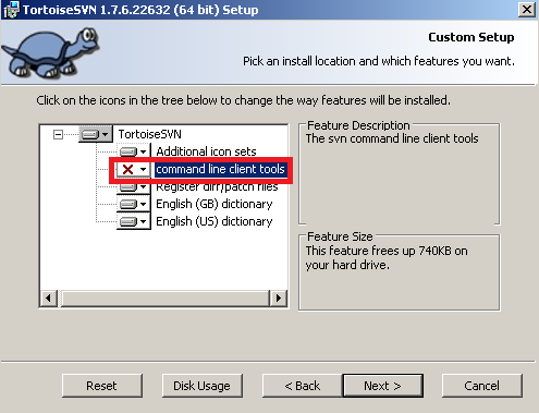 - Download and install tortoise svn client (don't forget to install subversion client see screen below)